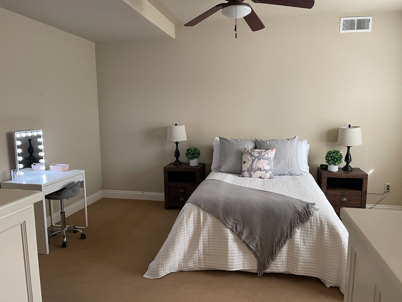 All rooms are semi-private (two each per room) to reduce the chance of isolation and foster a sense of comradery. The houses include relaxing living rooms with wall-mounted flat-screen televisions, dining rooms, full kitchens, plush mattresses, fresh linens, and private backyard patios. While each house is gender-specific, the residents share many of the same therapy groups. Program residents have the option of eating meals together as a community or in their respective houses.